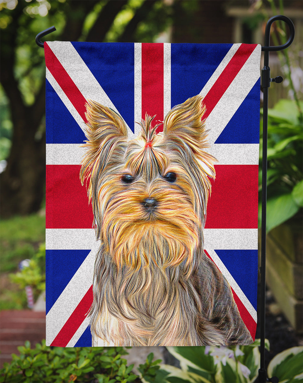 Yorkie / Yorkshire Terrier with English Union Jack British Flag Garden Flag – Decorative Outdoor Yard Flag KJ1163GF