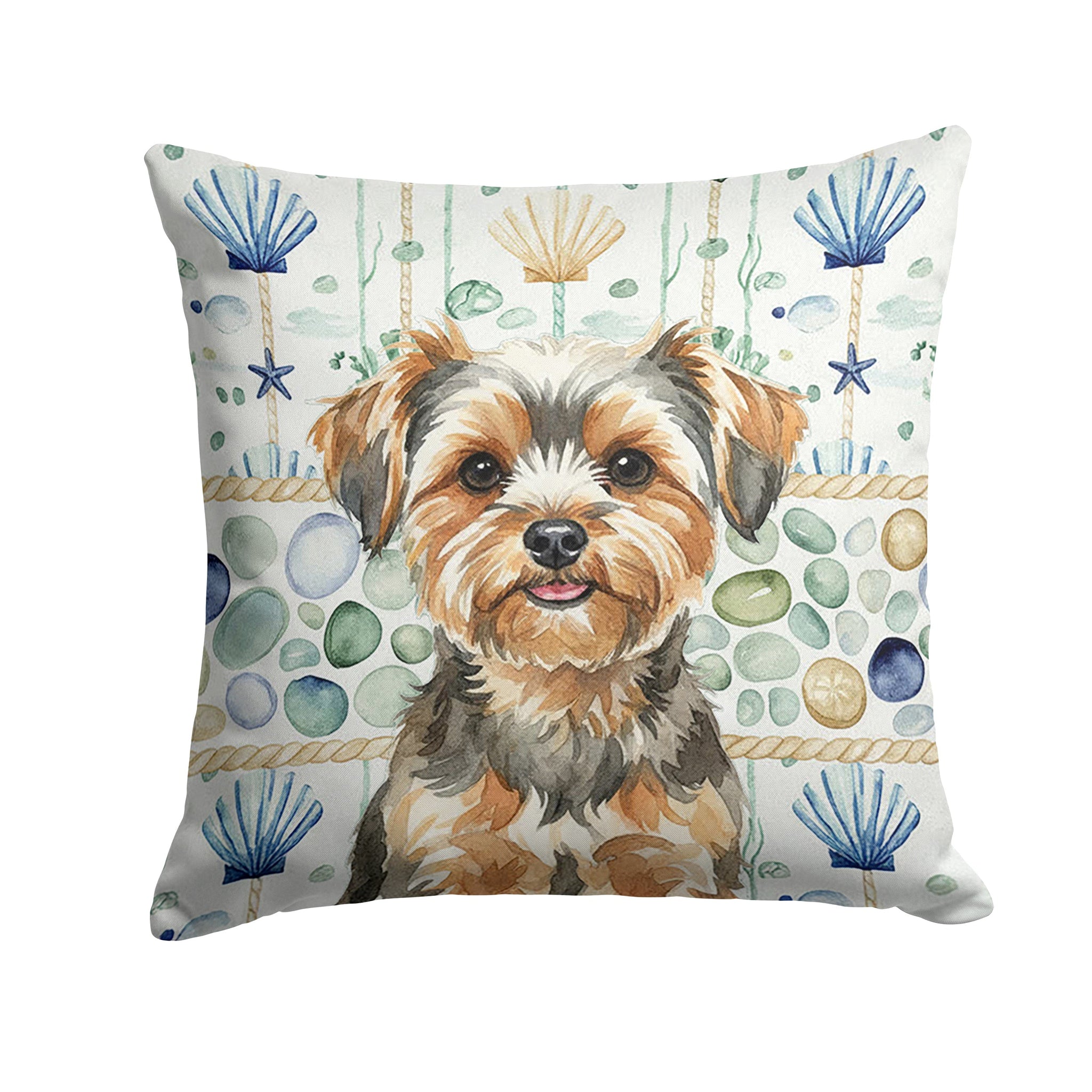 Throw Pillow featuring breed specific Yorkiepoo artwork. Revitalize your outdoor or indoor living space with Caroline's Treasures 18x18 Fabric Decorative Pillow. With a generously sized dimension of approximately 18 inches by 18 inches, this pillow makes a comfortable and aesthetic addition to any seating area. Made from a unique, water-resistant material developed by Caroline's Treasures, the pillow sham is 100% polyester fabric that's durable and ready to weather any condition. Its vibrant, full-color artwork will not fade over time as it is dyed with color-fast dyes. Whether you place it on your patio furniture, porch, veranda, or indoor couch, its soft canvas fabric ensures a cozy experience. The pillow is handcrafted in the United States, featuring a sham created from three pieces of fabric and a polyester insert for enduring shape and overstuffed comfort. Despite being robustly built to endure the outdoors, it is as soft and snug as your favorite indoor cushions. Please note, as all our pillows are handmade, sizes may vary slightly, adding to the charm of this unique decorative item.
