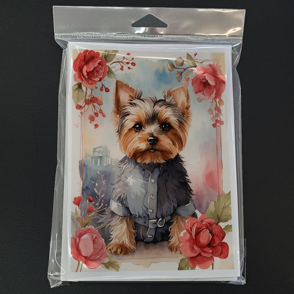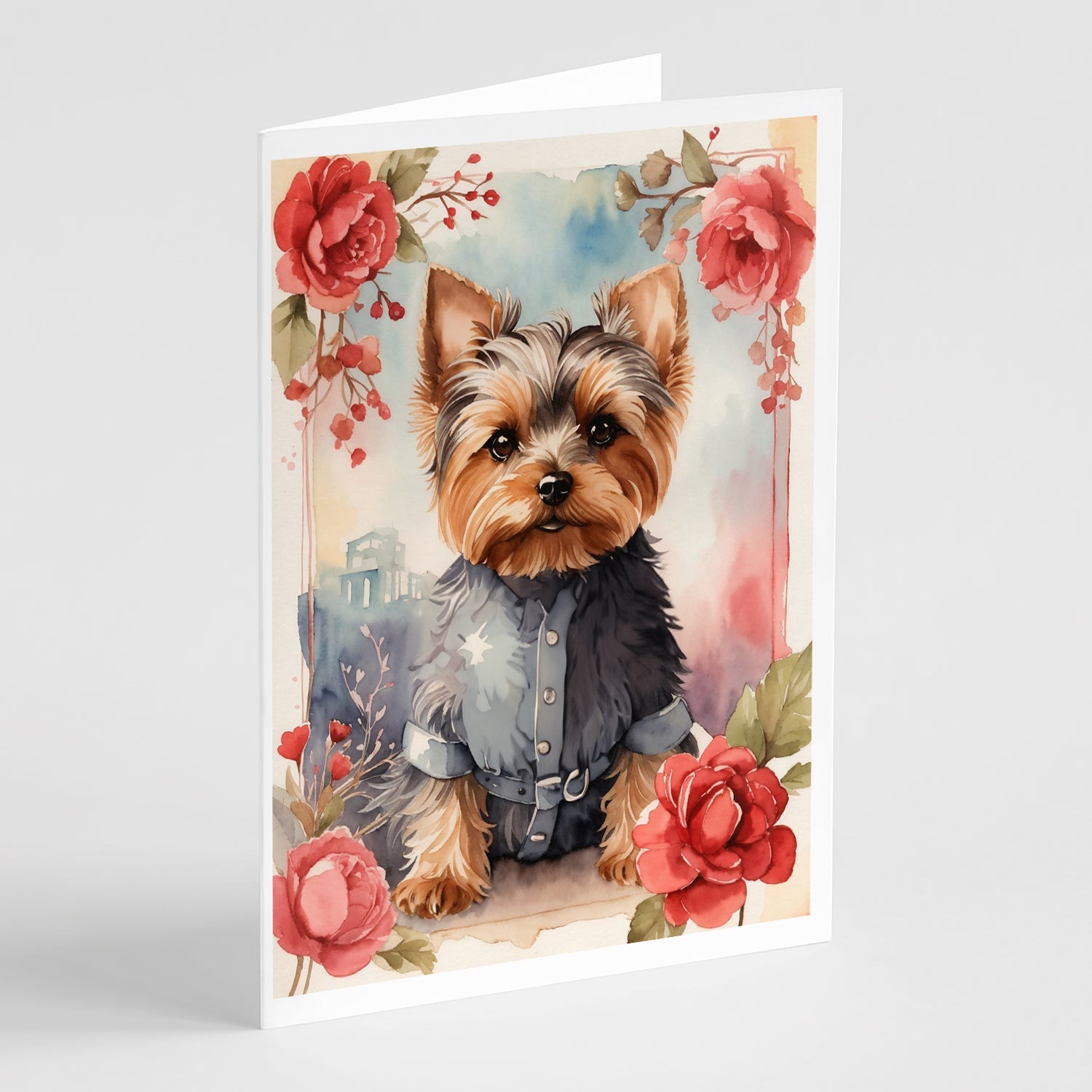 Yorkshire Terrier Valentine Roses Greeting Cards - Blank Note Cards – 8-Pack of Artist-Designed Cards with Envelopes